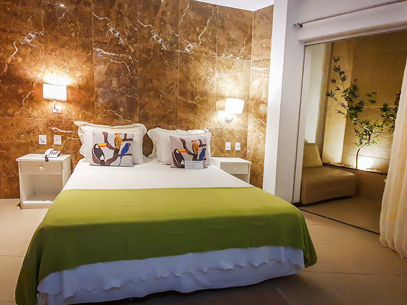 Descubra o equilíbrio perfeito entre sofisticação e aconchego em nossa Suíte Luxo com Varanda, ideal para casais em busca de romantismo ou para até três pessoas que desejam desfrutar de uma estadia com conforto e estilo.